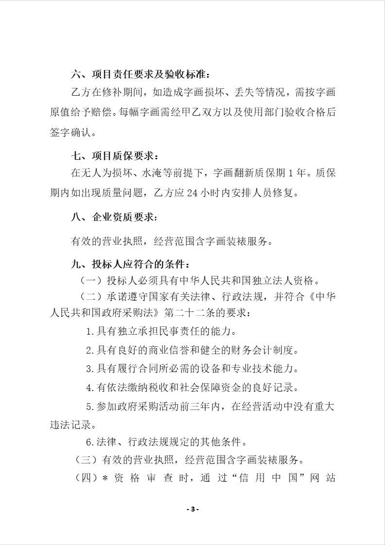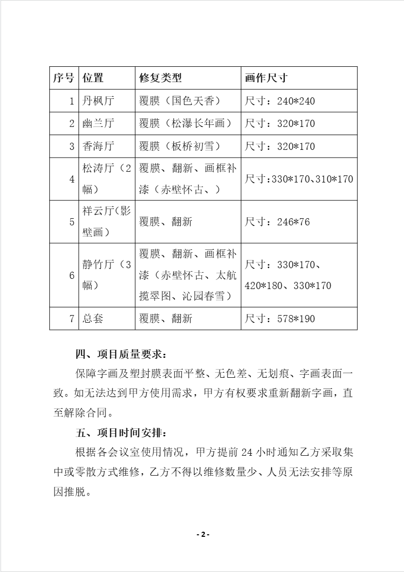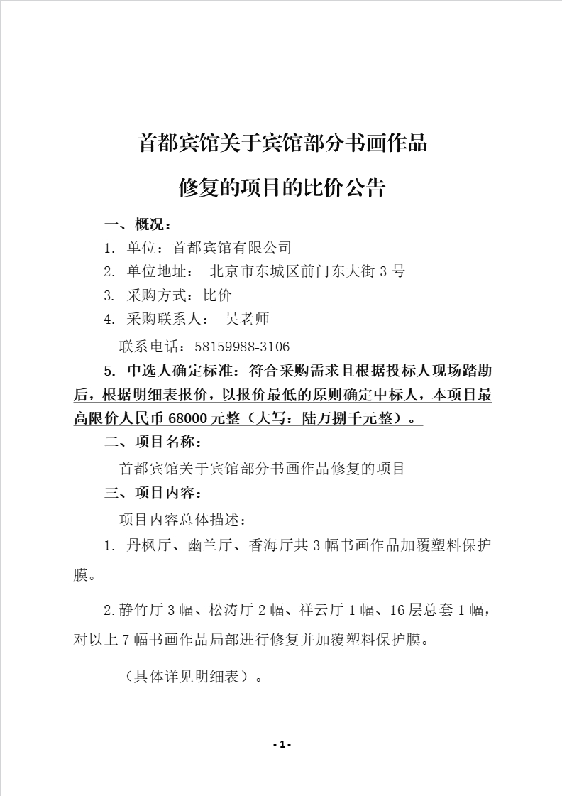 首都宾馆关于宾馆部分书画作品修复的项目的比价公告