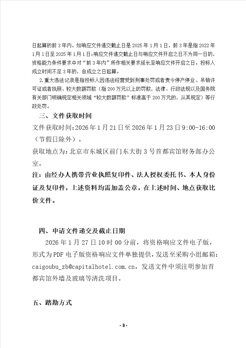 首都宾馆外墙及玻璃等清洗项目比价公告